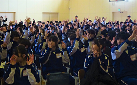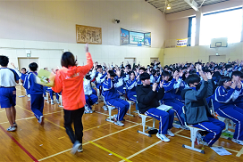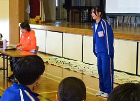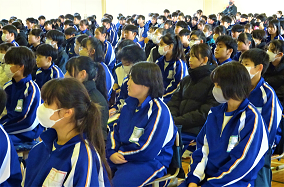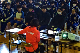 1/21の立春DAYに1・2年生は体育館にて講演を聞きました。講演者は七中の大先輩である田井小百合(旧姓川上)さんです。