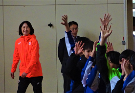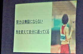 田井さんのこれまでの波乱万丈の人生では、たくさんの挫折に見舞われながらも、前を向き「目標を持つこと。」「努力は無駄にならない。形を変えて自分に返ってくる。」と信じ競技を続けました。その経験から導き出された思いや考えを後輩である七中生にお話しいただきました。生徒からの質問にも真摯に答えていただき、生徒にとって勇気の湧く講演となりました。