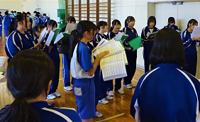 1/30の学活の時間に2年生は、3年生を送るための予選会の準備をしました。予餞会での出し物や装飾などを役割分担し、それぞれの準備や練習に取り組んでいました。合唱・看板・装飾品・劇などの活動が行われていました。短い準備期間ですので、凝ったものは難しいかも知れませんが、心のこもったおもてなしをしてくれると思います。楽しみですね。