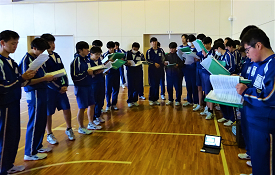 また、校長からは「正しい努力を継続して進化する自分に」なれるよう話がありました。「正しい努力」とは「ここぞ」というときに自ら気付くこと、「何をどうする」のかの正しい答えを考えだすこと、そして、力として身に付くまで継続すること、と捉えます。これからの時代に必要な力を身に付け「進化」し続けるために、一人一人が学校活動の中で「挑戦」していくことを期待します。~Go Seven’s Go!~