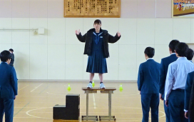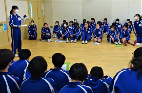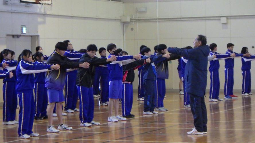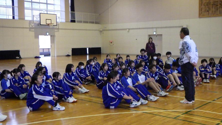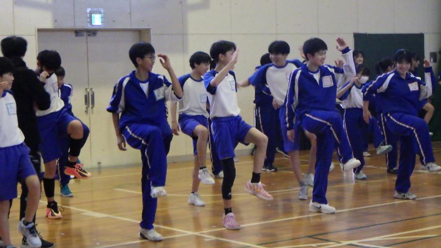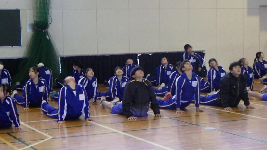 白井市学校支援アドバイザーをお招きし、陸上競技部・バスケットボール部・バレーボール部・卓球部、総勢80名を超える生徒たちが室内トレーニングについて学びました。はじめに全身を整えるストレッチを行い、その後は可動域を広げ、動きを高めるためのダイナミックストレッチ、さらには多様な動きを取り入れたランニングドリルを実践しました。「このトレーニングを積めば、速く走れるようになる!」というアドバイザーの言葉に、生徒たちは一層真剣に、かつ楽しみながら身体づくりに取り組む姿が見られました。最後には、この時期の基礎的な身体づくりや継続的なトレーニングの重要性についてお話をいただき、集中して学ぶことができた充実した放課後の時間となりました。
