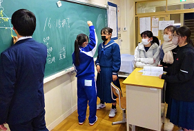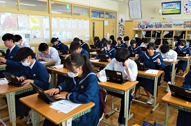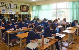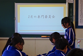 放課後は1・2年生のみの専門委員会が行われました。活発な意見が飛び交う委員会やタブレットを使っての話し合いが見られました。3年生は公立受験が近づいているので、インフルエンザ予防と勉強集中のため、参加せずに帰宅しました。元気に受験を受けられますように。