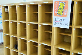2/16の3年生は、明日の公立高校受検の準備のため、午後は下校となりました。たくさんの3年生が17・18日の2日間の受検となります。帰りの下駄箱では、明日の会場で履く自分の上履きを持ち帰っていました。自分を信じて精一杯頑張ってきてください。