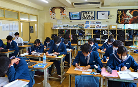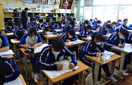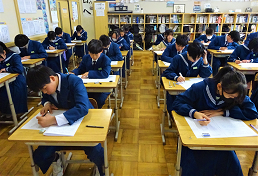 午後からの授業では、2年生のクラスで予餞会や卒業式に向けての合唱練習を音楽の時間に実施していました。3年生のクラスでは、公立試験に向けた準備も兼ねた卒業前テストを実施していました。
