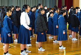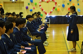 2/13は2年生は体育館で予餞会のリハーサルを全員で行っていました。みんな3年生のために一生懸命練習しています。楽しみですね。