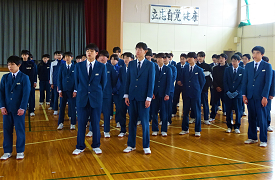 2/5・6の学活の時間に3年生は受験対策の活動を行いました。来る2/17・18の公立高校の試験での面接・自己表現・作文の実技練習をしました。本番さながらの緊張感の中、集中して黙々と作文を書くグループや、衣服と姿勢を整え自己表現や面接を行う生徒の姿は、凛々しくて頼もしく見えました。また、自己表現で部活動を選択した生徒は2/2~2/10まで放課後の部活動練習に参加しています。大丈夫、自信を持って臨んでください!