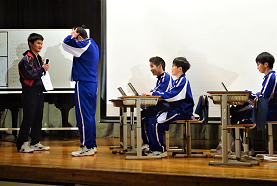 2/19・20と、2年生の予餞会に向けた出し物の練習、美術の授業では粘土で作った和菓子の発表会が実施されました。予餞会練習では、演技者・小道具・照明とそれぞれの役割の確認を行いました。また、合唱の部の生徒は音楽室で本番に歌う歌の練習に熱心に取り組んでいました。