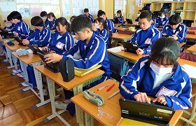 2/18の1・2年生は後期期末テストが2日目となり、技術科では、タブレットを使用してテストを行う新しい試みとなりました。この取り組みでは、本番に問題が発生しないように授業時にミニテストを数回行い、やり方に慣れることや通信エラー等の問題の検証をするなどしています。また、途中で通信エラーが発生した場合も想定し、同じ内容のプリントも配付し、もしもの対応に備えております。更に送信漏れ対応として、終了後そのままタブレットをたたむよう指示することで、出題者が送信漏れをキャッチし対応できるようにしてあります。テストの仕方も進化していかなければなりません。(本日はトラブルもなく実施できました。)
