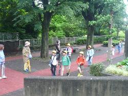 1年生が、生活科の授業で、学区の公園へたんけんに行きました。公園までの道のりでは、「こども110番の家」を確認しました。