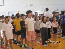 今日は、一年の折り返し。前期終業式・後期始業式が体育館で行われました。式では、2・4・6年生の代表児童が、前期に頑張ってきたことを発表しました。漢字を練習し検定に合格したこと、リレーの選手を目指して努力してきたこと、最高学年としての自覚をもち自らの生活を見直してきたことなど、一人一人の努力の足跡がよくわかる発表でした。