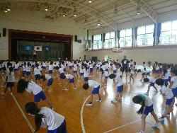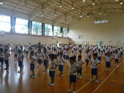 10月に予定されている運動会に向けた練習が始まりました。今日は、低学年と高学年が表現運動の練習をしていました。熱中症アラートこそ出ていませんが、木曜日までは暑い日が続きそうです。休憩と水分補給の時間を多くとり、熱中症指数計を確認しながら、練習を進めていきます。