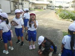 1年生は、今まで育ててきたアサガオの茎でリースづくりをしました。細い茎を束ねてリースにする作業に苦労する子もいましたが、友達同士助け合って、全員完成することができました。
