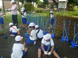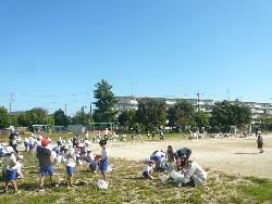 この作業で、だいぶグラウンドがきれいになりました。運動会まであと2週間あります。もっときれいにしていきたいと思います。お手伝いいただいた保護者の皆さん、ありがとうございました。