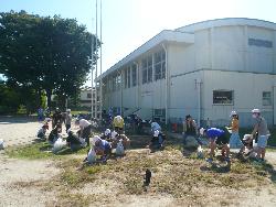 全校の子どもたちで校庭の除草作業を行いました。年間予定では18日(木曜日)に行うはずでしたが、熱中症警戒アラートが発令されたので、今日に延期となりました。突然の変更にもかかわらず、50人ほどの保護者の方も手伝ってくれました。