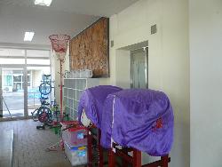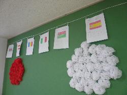 本校の運動会は来週11日に行われます。廊下には作成した国旗等の掲示物が貼られ、昇降口付近には運動会グッズが置かれています。本校の運動会の日も、今日の天気のような秋晴れであることを願っています。