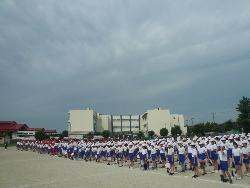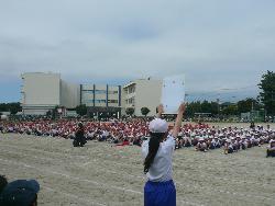 運動会に向け、初めての全校練習が行われました。今日は、開閉開式での態度と応援の練習がありました。応援団はこれまで練習を頑張ってきたので、応援団長は、早くも声がかすれています。本番まで声が戻るのか心配しています。