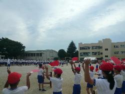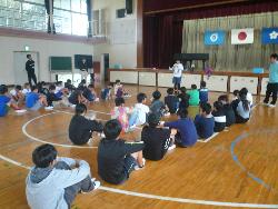 運動会の中心となって活躍した応援団の解散式が行われました。体育部担当の先生、応援団担当の3人の先生から、これまでの振り返りの話がありました。応援団の子どもたちは、本当によく頑張っていました。お疲れ様でした。