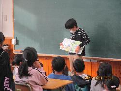 図書委員会の児童が、各学級で読み聞かせを行いました。どのような本を読むと喜んでもらえるか考え選書を行い、本の挿絵をスクリーンに映し出すなど工夫して読み聞かせを行いました。これを機会に、更に、本を手にする子が増えることを期待しています。
