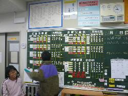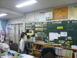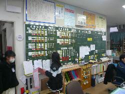 全国的にインフルエンザが流行しています。市内でも、学級閉鎖の学級が増えています。本校の状況は、職員1名、児童13名となっており、少しずつ増えている状況です。まずは、手洗いにうがい、換気をしっかりと行って予防に努めています。1時間目の休み時間になると、各学級の保健係さんが、職員室内にある出欠黒板に記入します。今の時期、この仕事はとても重要です。