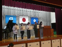 本校1年生1名が、千葉県読書感想文コンクールの最優秀賞を収めました。感想文は、「わたしのたからもの」という題名で、おばあちゃんとやりとりしている手紙を宝物のように大切にしている気持ちが伝わる作品です。とてもすばらしい感想文なので、昼の放送で全校の友達に聞いてもらいました。