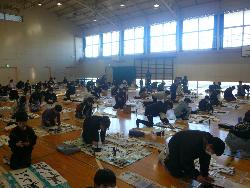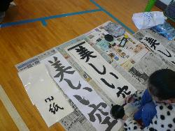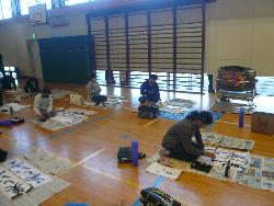 昨日は3年生と4年生、今日は5年生と6年生が、体育館で書き初め大会を行いました。ストーブは稼働していますが、ひんやりとした空気の中で、気持ちを研ぎ澄ませて書くことができました。5年生の題材は、「美しい空」です。筆遣いに気をつけ上手に書くことができました。