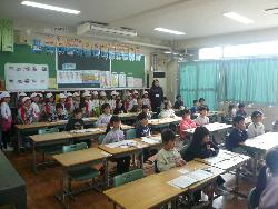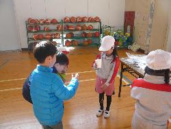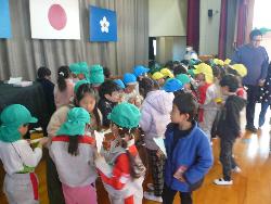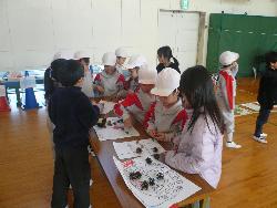 1年生がリーダー性を身につけるため、幼稚園児が4月からの学校生活への期待を高めるため、隣接する幼稚園児と1年生との交流会が行われました。今日は、1年生が幼稚園児に生き物クイズを出したり、1年生が作ったおもちゃで一緒に遊んだりしました。たった1年しか年齢に違いはありませんが、1年生はお兄さん、お姉さんぶりを発揮していました。