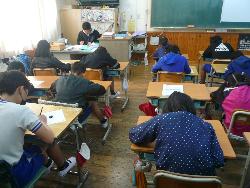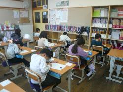 学力向上を目的として、毎月1回、大小チャレンジ(月例テスト)を行っています。この大小チャレンジは、テストの出題範囲を事前に告知し、家庭学習で子ども一人一人に練習させ、テストに臨ませるようにしています。今日は、漢字のテストでした。3年生も4年生も、一生懸命頑張っていました。