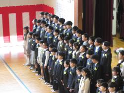 卒業式に出席する5年生(在校生代表)の練習が始まりました。5年生の練習時間はあまりありませんが、限られた時間の中で、式にふさわしい態度や作法を身につけていきます。担任の先生からは、「6年生の姿を見て、一年後の自分を想像しながら参加してください。」という話しがありました。