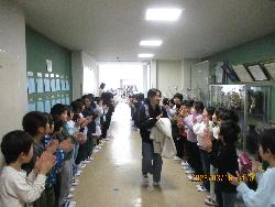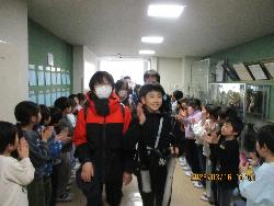 いよいよ明日は卒業式です。1~4年生は卒業式に参加しないので、6年生とは今日でお別れです。卒業する6年生に言葉をかけるため、6年生の下校に合わせて花道をつくり、「おめでとう」と声をかけました。