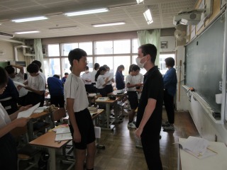 先日のスクールサミット・スピーチコンテストの発表を聞き、英語を話すことに意識が高まっているでしょうか。2年生の授業では、先生やALTの先生と会話をしていました。今後は、グローバル社会が広がるため、英語でのコミュニケーションも大切になってきます。