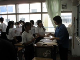 定期テスト2日目、2教科のテストを行いました。夏休み中から取り組んだ成果が出ていることでしょう。3年生は11日に2回目の実力テストを迎えます。定期テストが終わっても、引き続き学習の習慣を続けていきましょう。