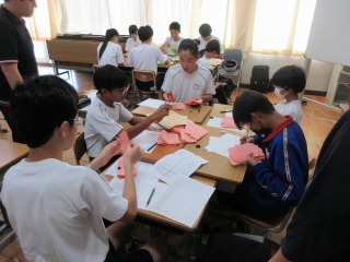 1,2年生は、前期・後期で技術科と家庭科の授業が入れ替わります。前期の終了が近づいてきて、作品の完成も見えてきました。1年生はファイルカバー、2年生はラジオを作成しています。