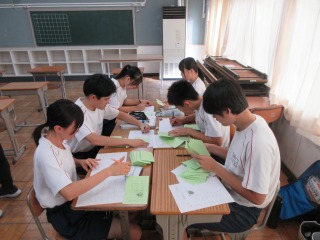 3年生は流石受験生。落ち着いた国語の調べ学習や数学の教え合い学習、そして美術では水墨画の授業が展開されていました。