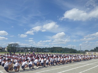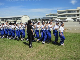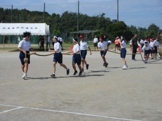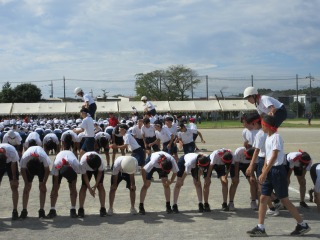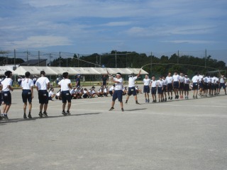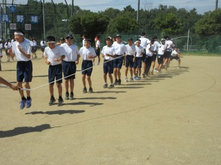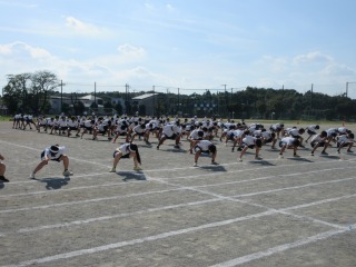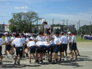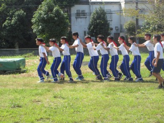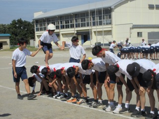 体育祭に向けて学年種目の練習が始まりました。3年生は背中渡り、2年生はムカデ、1年生は長縄になりました。クラスで団結してトップを目指しましょう。
