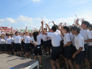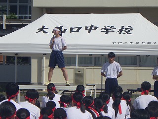 結団式の後に、両団に分かれて色別集会を行いました。応援団リーダーの紹介や団長の話がありました。また、応援練習も行いました。応援団リーダーを中心に先輩がリードし、全員で盛り上がっていました。