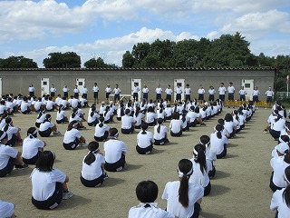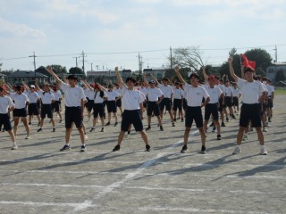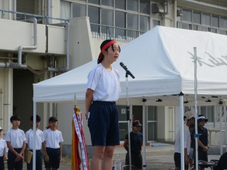 本日、体育祭結団式を行いました。「優勝 友情 本気必笑 勝利の女神いただきましょう!」のスローガンの下、体育祭練習が幕を開けました。実行委員長と両団長の話に気持ちが高まりました。
