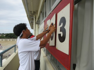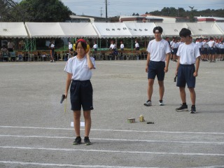 午前中に予行練習を行いました。予行練習では、各係の活動を確認することも大切です。競技に係の仕事に大忙しですが、頑張って取り組んでいます。