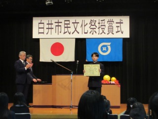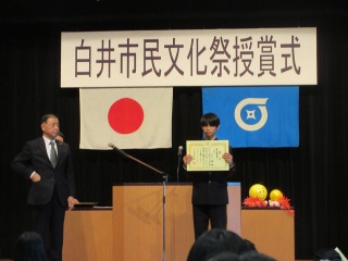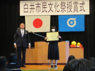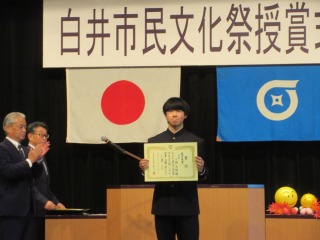 市文化祭の作品展の表彰が市文化センターで行われました。本校から4名の生徒が受賞しました。おめでとうございます。