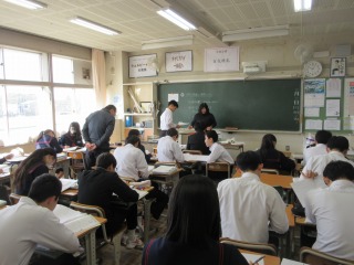 3,4校時にハローワークの方をお招きして「働くこと」についての講話をいただきました。何のためには働くのか、将来の自分の職業など考えることができました。