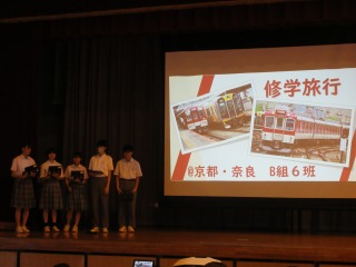 各班ごとに資料を作って修学旅行の発表会をしました。