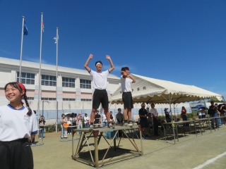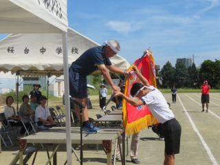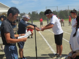閉会式では、総合優勝の白組に優勝旗、応援優勝の紅組には優勝カップが贈られました。長縄上位3位のクラスの表彰もありました。
