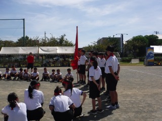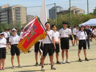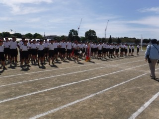 素晴らしい秋晴れの下、体育祭を開催しました。開会式は、実行委員の運営により進行します。