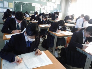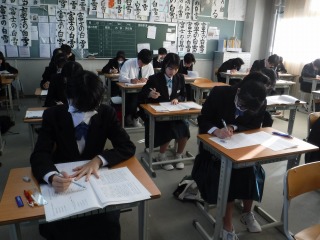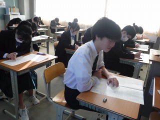 年明けの登校2日目ですが、3年生はテストに挑みます。冬休みの成果は発揮できたかな。真剣な表情です。