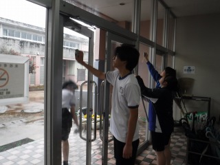 入試を終えた3年生は、今日の午後に教室の掲示物をはがしたり、窓の清掃を行いました。教室のある1階だけでなく、全校生徒が使う昇降口、職員玄関の窓がピカピカです。3年間すごした学校に「ありがとう」の気持ちを込めて、みんな良い顔で取り組んでいます。