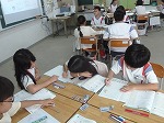 金曜日の業間休みは6年生が体育館優先の日です。体育館で広々バスケットボールやその他のボール遊びを楽しんでいました。教室では、仲間と丸くなってトランプに興じる子、自作の夏休みの工作を友達と楽しむ子、キャラクターの塗り絵を丁寧に仕上げる子、タブレットで調べ物をする子、担任を囲んで楽しそうに話をしている高学年、自分たちで考えた消しゴムバトルで大盛り上がりの子、座るのももったいないのか立ちながら本を読む子・・・様々な過ごし方をしていました。