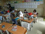 秋の作品展に向けて、各クラス図画工作の作品作りに入っています。1年生はカラフルなかたつむりの絵を描いていました。2年生は「ぎゅっとしたい!わたしのお友だち」の学習で、材料を結ぶ、しばる、たらす、巻く、ねじる、丸めるなど工夫して「お友だち」作りに励んでいました。