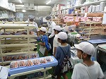 バックヤードでは、切る前の大きいブリや鯛を間近にして「これ、何の魚?」と疑問の声が挙がりました。切って、パックになって、名前が貼ってあると分かるのですが、魚そのものの姿は見たことがない児童が多くいました。「カットするのは、家で食べやすくするためだね。」大正解です。