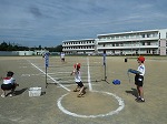 1年生が体力テストの50m走を、一生懸命走っていました。まっすぐ走るのも上手になりました。5年生は体育館でソフトバレーボールです。大型扇風機の風を気にせず、落ち着いてできるようになりました。