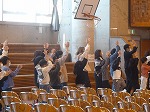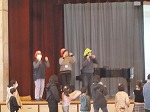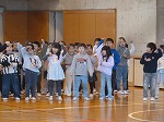 まずは、各学年で音楽の時間に練習している曲を披露しました。続いて地域の方が皆でできる「パートナーソング」「ボディーパーカッション」を教えてくださいました。親子で輪になって大いに楽しみました。最後に皆で『世界に一つだけの花』を歌うと、体育館が感動に包まれました。