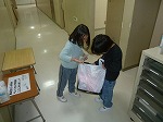 取りに来た児童が思わず「これ何?」と袋の中をのぞくと・・・!「あっ、すごい。」応募用紙に素敵な手作りストラップが付いていることに気づき、大喜びでした。